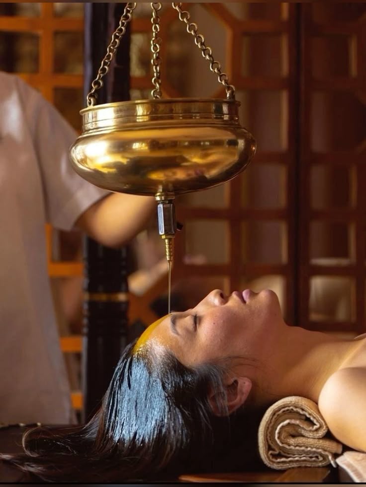 A traditional therapy where a stream of medicated oil is poured on the forehead. It helps relieve stress, insomnia, anxiety, depression, and improves mental clarity.